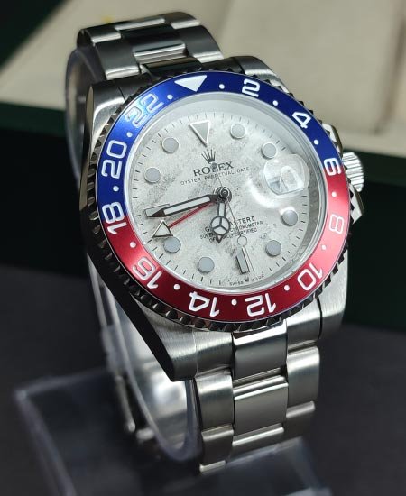 This model is the only GMT-Master II with a meteorite dial and a two-color Cerachrom bezel insert in blue and red ceramic.  unique treasure Designed to show the time in two different time zones simultaneously during intercontinental flights, the Rolex Watch Oyster Perpetual GMT MASTER m126719blro has come to be recognized for its robustness and versatile appearance.