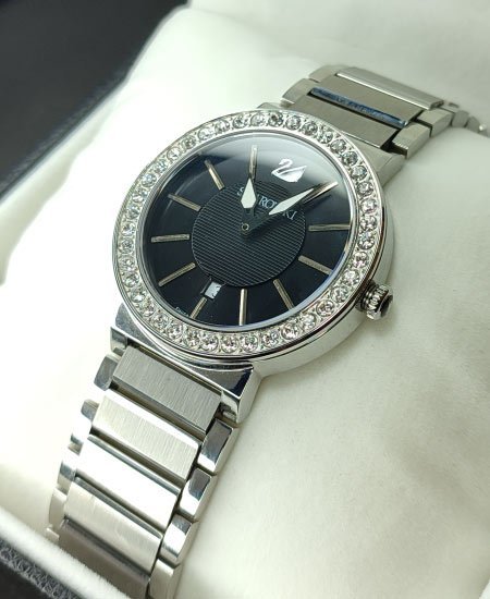 Be the first to review “Svrovski Women’s Silver Black Watch”